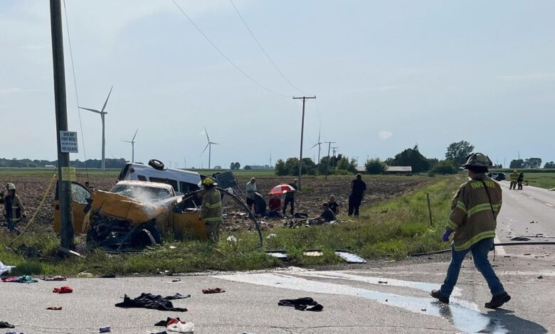Photographs and video footage from the scene showed both vehicles badly damaged, with debris scattered across the roadway and into nearby fields. The van, carrying families who just hours earlier were going about their day, was left crumpled beyond recognition. Firefighters, police officers, and emergency medical personnel described the crash as one of the worst the county has seen in years.
