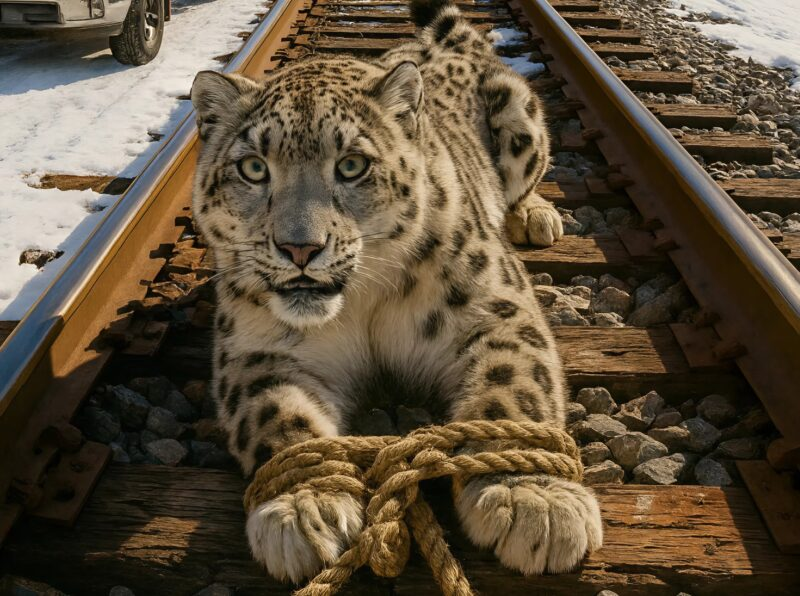 The lynx felt the ground vibrate, heard the distant rumble of the approaching train, and began to thrash nervously, desperately trying to escape. Its claws scratched against the wooden sleepers, its breathing grew heavy, its eyes filled with panic. It knew — time was running out.