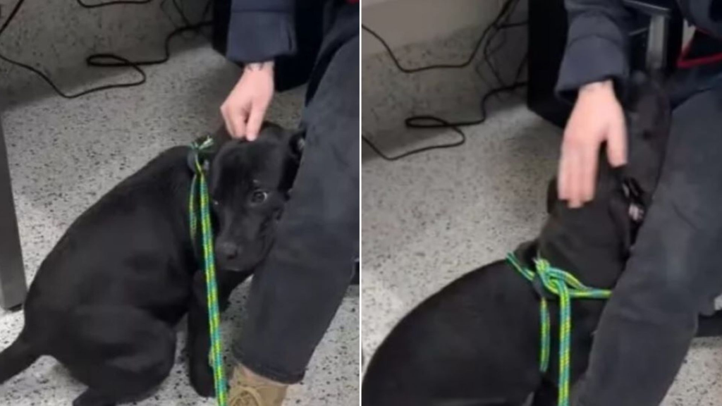 The puppy clung to his favorite shelter worker as if he sensed what awaited him. He had a heartbreaking look on his face as he kept trying to hide behind the employee’s leg.