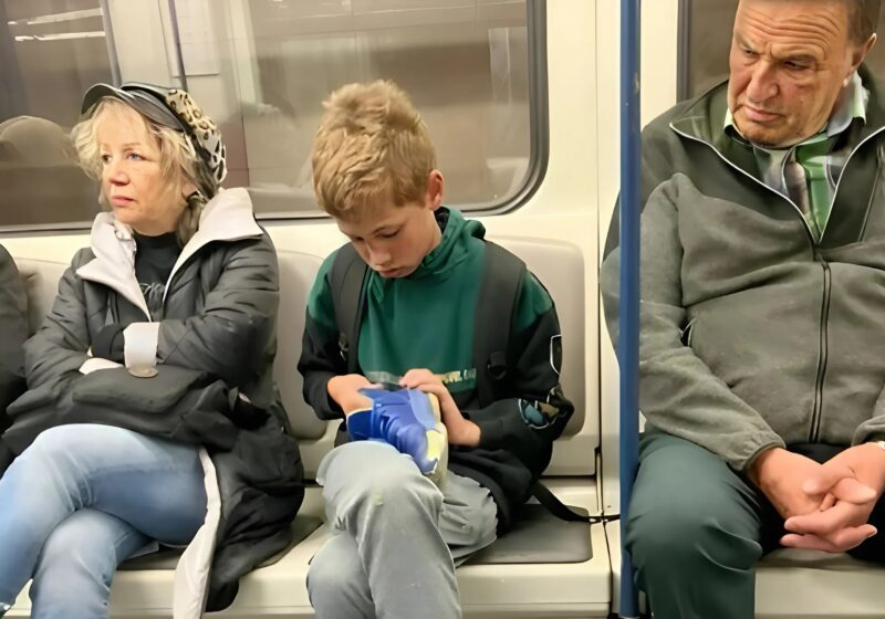 At the next stop, the doors opened, and a boy of about ten years old stepped into the car. He looked like he had run away from class — messy hair, wrinkled shorts, holding one worn-out sneaker in his hand. But the main thing — he was barefoot. On one foot, he wore a thin striped sock. He sat down in an empty seat between two passengers and tried not to attract attention.