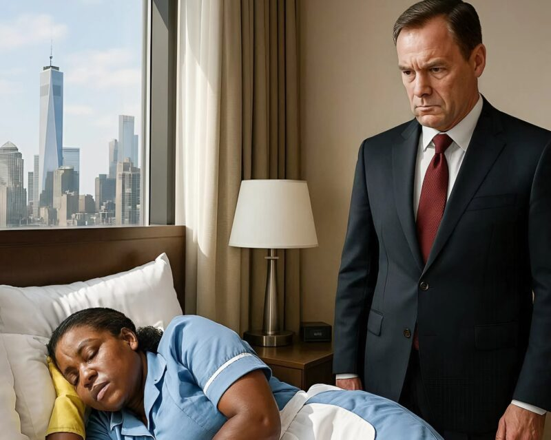 After a long meeting, he returned to the room to grab some papers and rest for a while. But when he opened the door, he suddenly froze: on his wide bed lay a woman in a blue maid’s uniform, peacefully asleep.