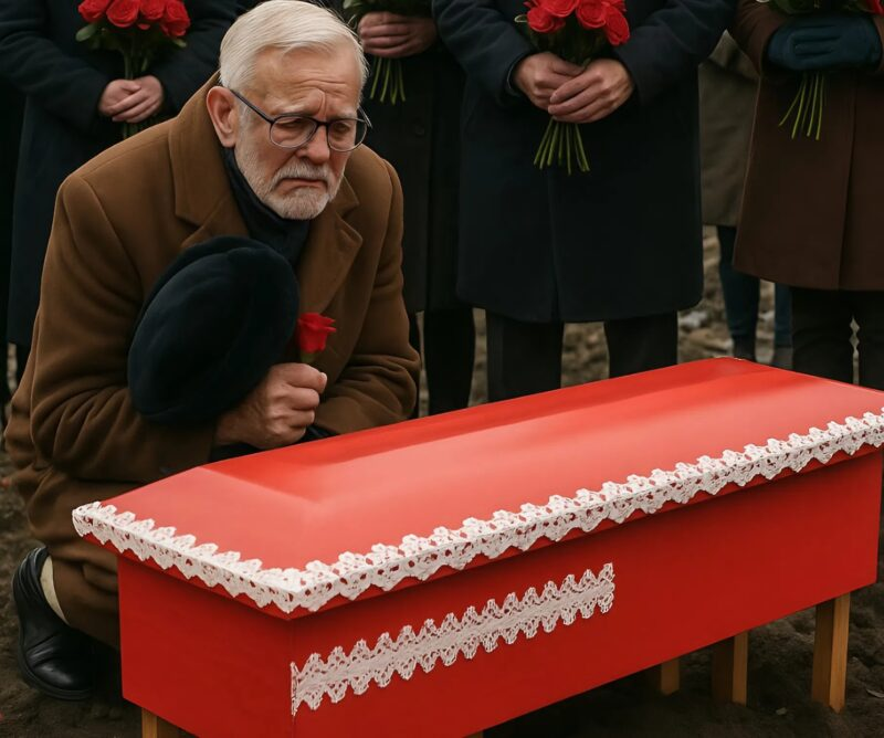 Grandfather stood at the edge of the grave, holding his hat and a lonely rose in his hands. His face was etched with pain like never before. His shoulders trembled, his lips whispered silent words. He seemed smaller, as if the weight of loss had bent him forever. People around him lowered their eyes, unable to look at his suffering.