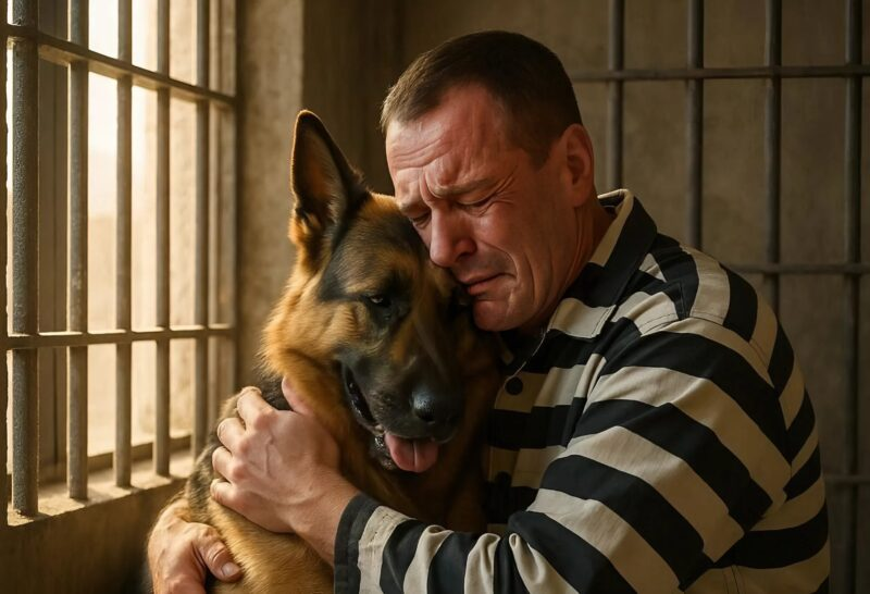 An hour later, the dog was brought into the cell. As soon as he saw his master, he rushed to him, wagged his tail, jumped, and licked his hands. The man embraced him so tightly, as if he feared this would be their last hug. He stroked him, pressed his face into the fur, and wept silently.