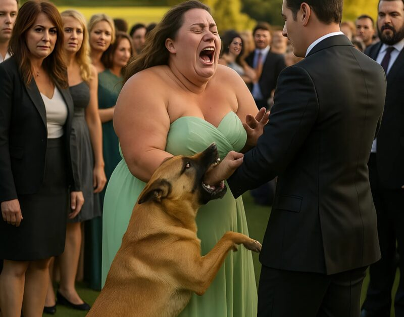 My dog, Koko, who had been lying calmly by our table, suddenly jumped up, charged toward the woman, and bit her on the arm. The woman screamed in pain and fear, trying to fight the dog off and begging us to remove him. Guests ran over, including my bride.