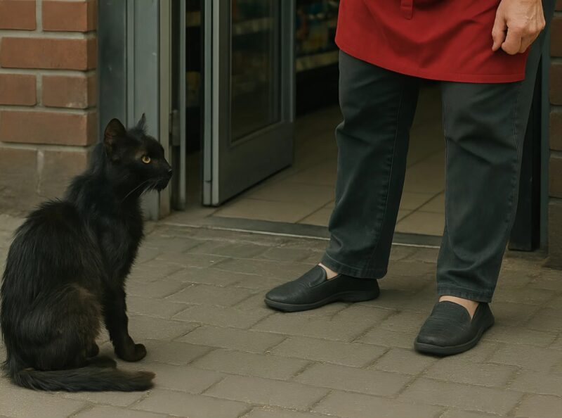 It was a typical evening in a small grocery store on the corner of a busy street. In front of the entrance sat a cat — thin, with dull fur, but with kind eyes full of constant worry.