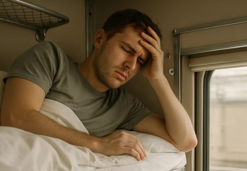 The boy, sprawling on the lower berth, kept fidgeting, kicking the mattress and the metal supports, making the whole structure shake and vibrate. Moreover, he was humming some silly melody from a computer game and wouldn’t stop talking. At first, I endured it. Then, summoning my courage, I asked the woman to calm her son.