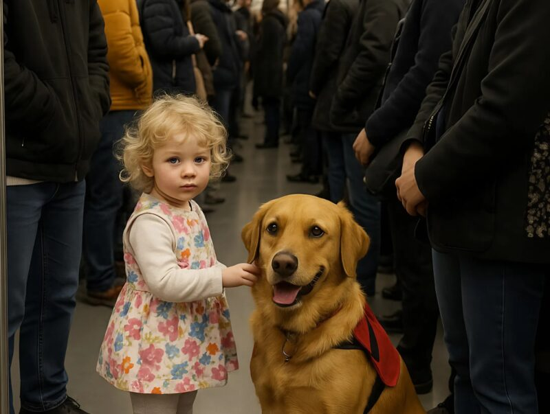Amid this chaos, a young mother, her little daughter, and their golden retriever tried to catch the train. The girl held the dog’s leash and looked around in awe — everything seemed huge and exciting.