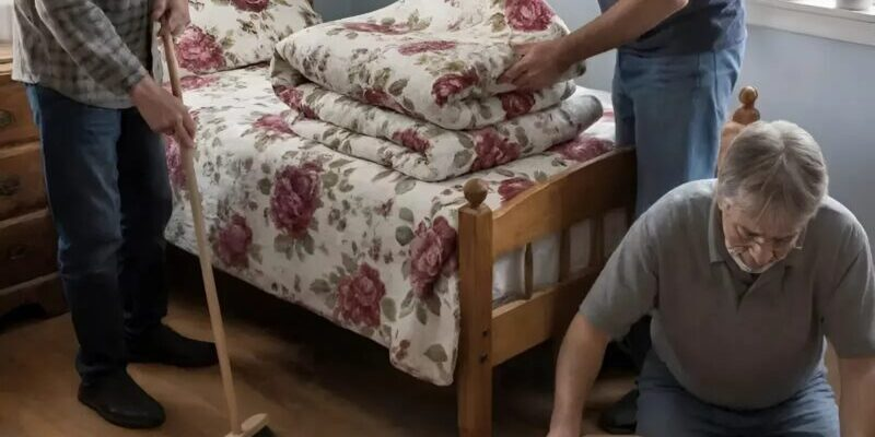 In her small room, there was nothing valuable—just a chipped wooden wardrobe and those three thick, patched blankets, carefully folded by her hands.