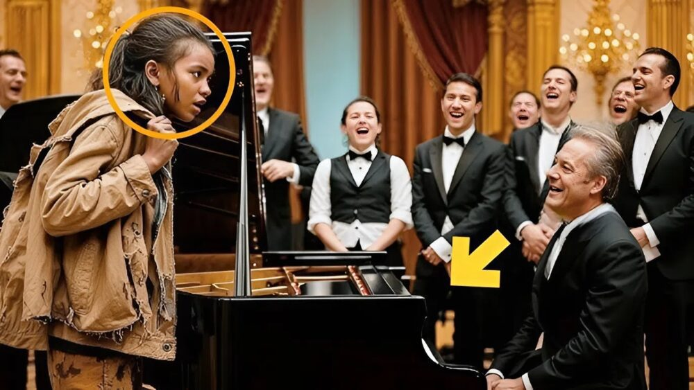The elite crowd turned, their gazes filled with disdain. A platinum-haired woman tightened her grip on her glass. “How dare this girl come in here?” Security was called, but the irony of the situation escaped everyone — it was an event dedicated to underprivileged youth, and Amelia, coming from the streets, had slipped in among them, drawn by the grand piano under the chandeliers.