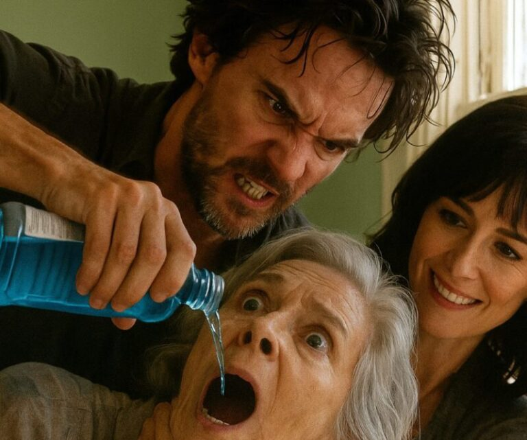 Her son and his wife waited for a reaction, but she was no longer the one they thought she was. Slowly, almost imperceptibly, she turned her head, and the mouthwash bottle slipped from her lips onto the table. It was a sign—tiny, but powerful. They didn’t notice.