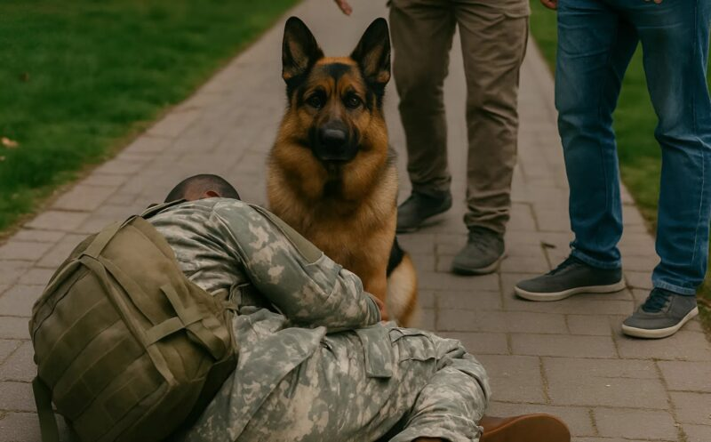We stood in hesitation, not knowing what to do. The soldier lay motionless, his breathing barely visible. The shepherd kept circling around his master, sometimes growling, sometimes sharply glancing at the approaching passersby. It seemed like one more step, and he would lunge to protect him. People began to stop, a crowd gathered, but no one dared to come closer.