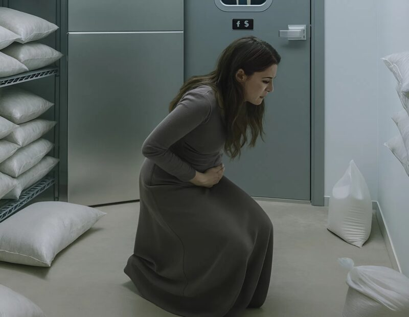 The temperature inside was near freezing. Anna trembled, shouted, pleaded, but no one could hear her. From the shock, her contractions began. She collapsed to the floor, clutching her stomach, trying to hold onto what little warmth she had left.