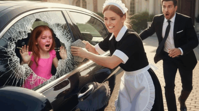 The maid ran around the car, looking for a crack, a mistake, any opportunity. But the luxury of the vehicle had become a perfect trap: the armor was unbreakable. Inside, Sophie’s fragile body slowly slumped against the seat.