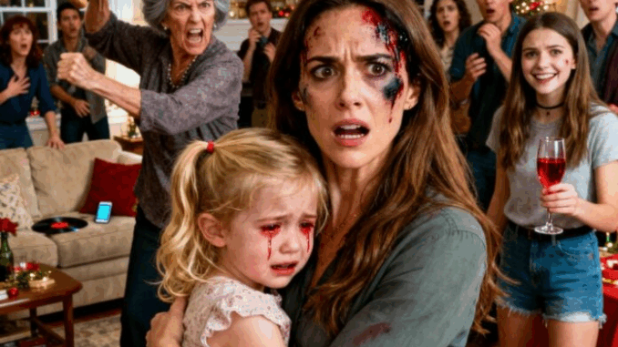 Lily lay on the floor beside me, a small, motionless form. There was blood across her forehead, soaking into her curls. Too much blood. My chest felt like it cracked open. I crawled toward her, my bones screaming with pain, and pulled her into my arms.