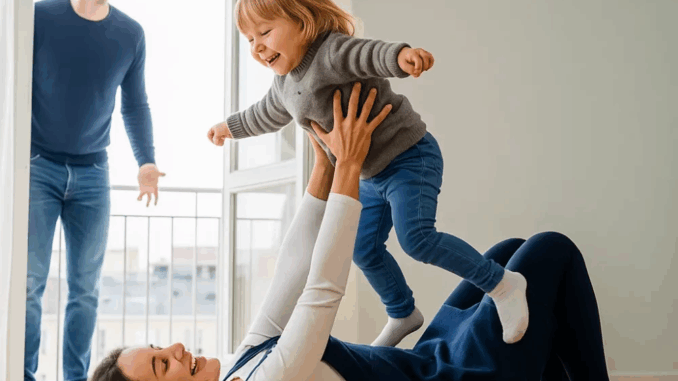 Sophie was lying on her back on the floor, holding Emma above her, the little girl squealing with laughter. But it wasn’t just that — Sophie’s hands weren’t under Emma’s arms like one would expect. They were supporting her legs. And Emma… Emma was kicking.