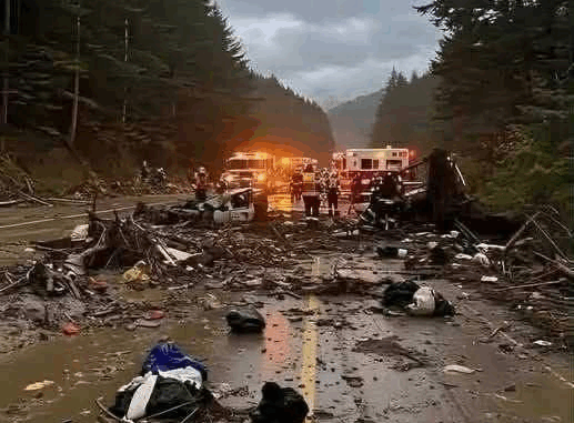 The area remains inaccessible to motorists, with no indication of when the highway will be reopened.