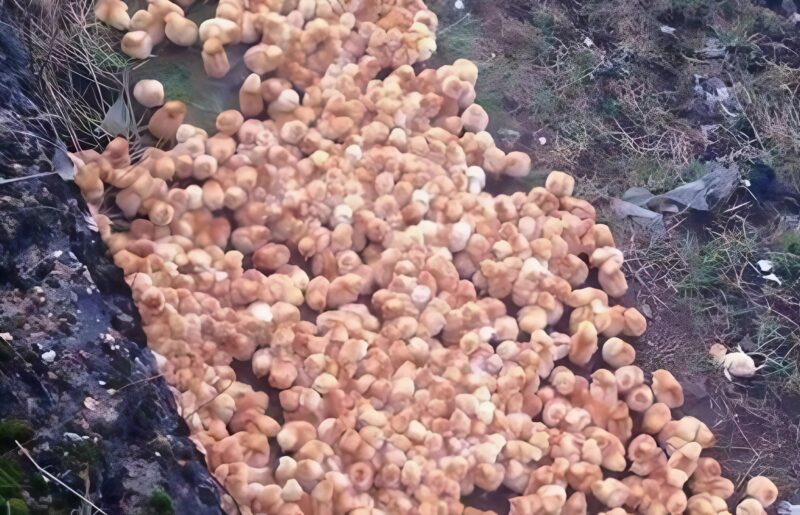 I often walk in the forest, and recently, as I was calmly strolling among the trees, my gaze caught a strange pile lying on the ground ahead of me. At first glance, it looked like mushrooms or tennis balls, but no.
