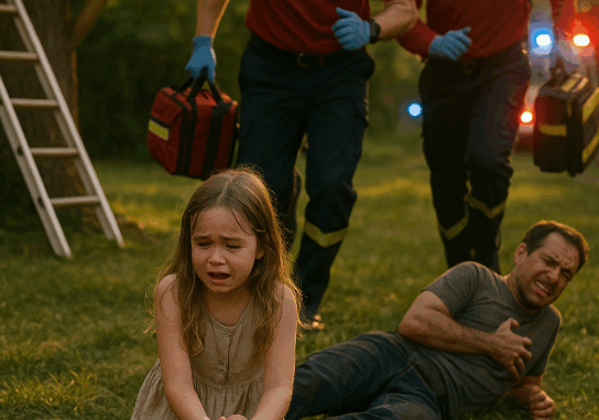 “They fell down. They’re not moving. We were in the backyard, and Dad said we’d surprise Mom when she came home. He climbed up with Mr. Parker to fix the rope for the treehouse. Then the ladder slipped. They fell. Please… they’re not waking up.”