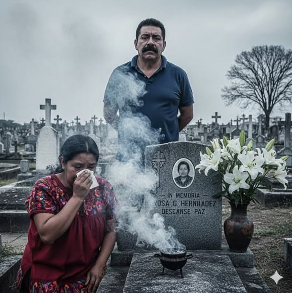 That afternoon, it was drizzling softly. The cemetery was empty; only the wind rustled through the eucalyptus trees. I carried white flowers, a cloth, and a bundle of votive candles. With a trembling hand, I placed the chrysanthemums on the grave and whispered,