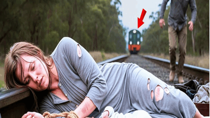 Charles pushed himself to the limit, running for his life, and then the horrific scene struck him, nearly stopping his breath. Two figures lay motionless beside the tracks. It was a young woman, gaunt, her dress in tatters, her dark hair plastered to her sunken face. Her hands were tied tightly to a rail, the rough ropes cutting deep into her pale wrists. Her other leg was also chained to the opposite rail. Even more horrifying, on her chest, wrapped in a piece of old, worn cloth, was a newborn baby, red and weak, with only a small tuft of dark hair, crying, a cry so weak it broke the heart.