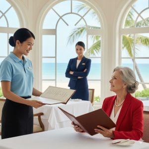 Her green eyes surveyed the restaurant with a mixture of curiosity and something Elena recognized: loneliness. Mrs. Herrera hurried to the head table. “Mr. Valdés, what an honor. We have our best table ready.” Julian nodded as he led his mother, but Elena noticed something. Mrs. Carmen was completely disconnected from the conversation. The table was by windows overlooking the sea. Mrs. Herrera ordered Elena, “You wait on Mr. Valdés’s table, and you’d better not make any mistakes, or you’ll be out on the street tomorrow.”