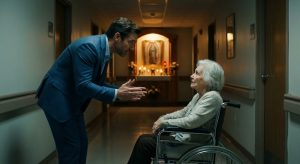 The atmosphere was somber, but there was something else, something that tugged at his soul. He walked down the long hallway, watching the elderly residents sitting in broken armchairs, some asleep, others watching TV, not quite understanding what was happening. Then he saw her sitting in a chair… Near a dirty window, a woman with disheveled, wrinkled white hair stood with a gaze that sent shivers down his spine. He didn’t know why, but he couldn’t tear his eyes away. It was as if something deep inside him screamed that he knew her. He approached slowly, his hand trembling slightly—unusual for him, as he was normally a confident and resolute man. The woman looked up as if she felt someone calling her without words. Leonardo swallowed hard. She wasn’t the most well-groomed or the best-dressed. In fact, she seemed like one of the most forgotten people there. But there was something about her face, the way she tilted her head, that felt unbearably familiar.