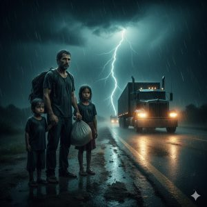 The instinct of a veteran trucker screamed at him: “Don’t stop. Trap.” He had heard enough stories: robberies on lonely roads, human decoys, people feigning need to steal the truck or the cargo. His right foot remained firm on the accelerator. “The world is full of misfortune,” he told himself. “And I’m no saint.”
