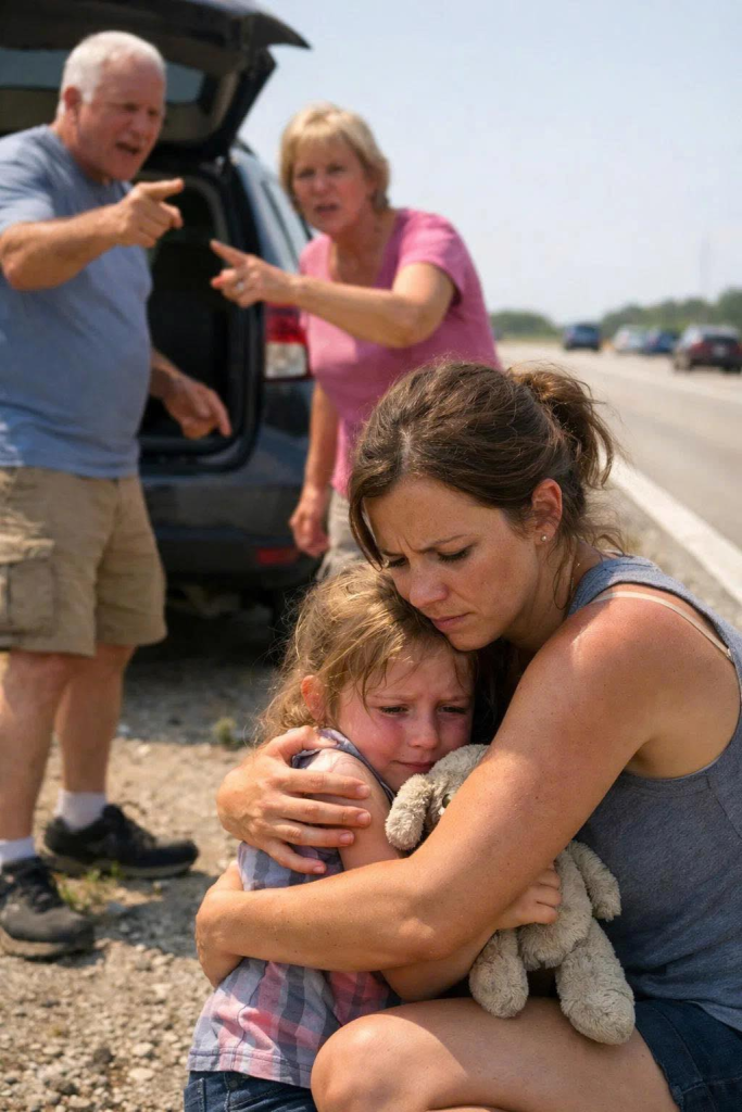 The sun was high and merciless the day my parents decided that my six-year-old daughter no longer deserved a seat in their car, and as the heat shimmered above the endless stretch of Highway 47, I stood there holding her small shaking body, realizing with a clarity that hurt more than the burning asphalt beneath my shoes that the people who raised me were no longer safe to call family.