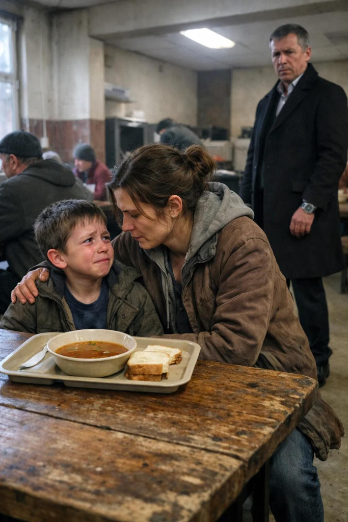 “Mom, if I take two pieces of bread today, will we have less tomorrow?” — The boy’s quiet question stopped a powerful businessman in a soup kitchen… and led him to shut down his own eviction plan, lose his fortune, and choose something far harder than control.